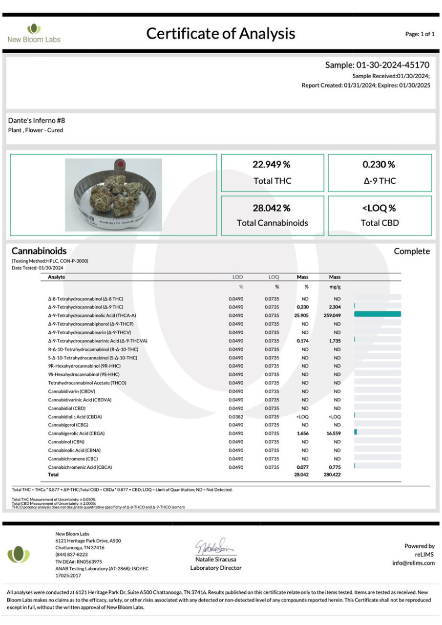 Dante’s Inferno THCA Tea features a striking appearance, with deep green and purple hues highlighted by vibrant orange pistils, offering a visual treat before you even take your first sip. The thick coat of trichomes gives the buds a frosty appearance, reminiscent of morning dew on a vibrant garden. This aesthetic appeal makes Dante’s Inferno Tea a holistic experience.
