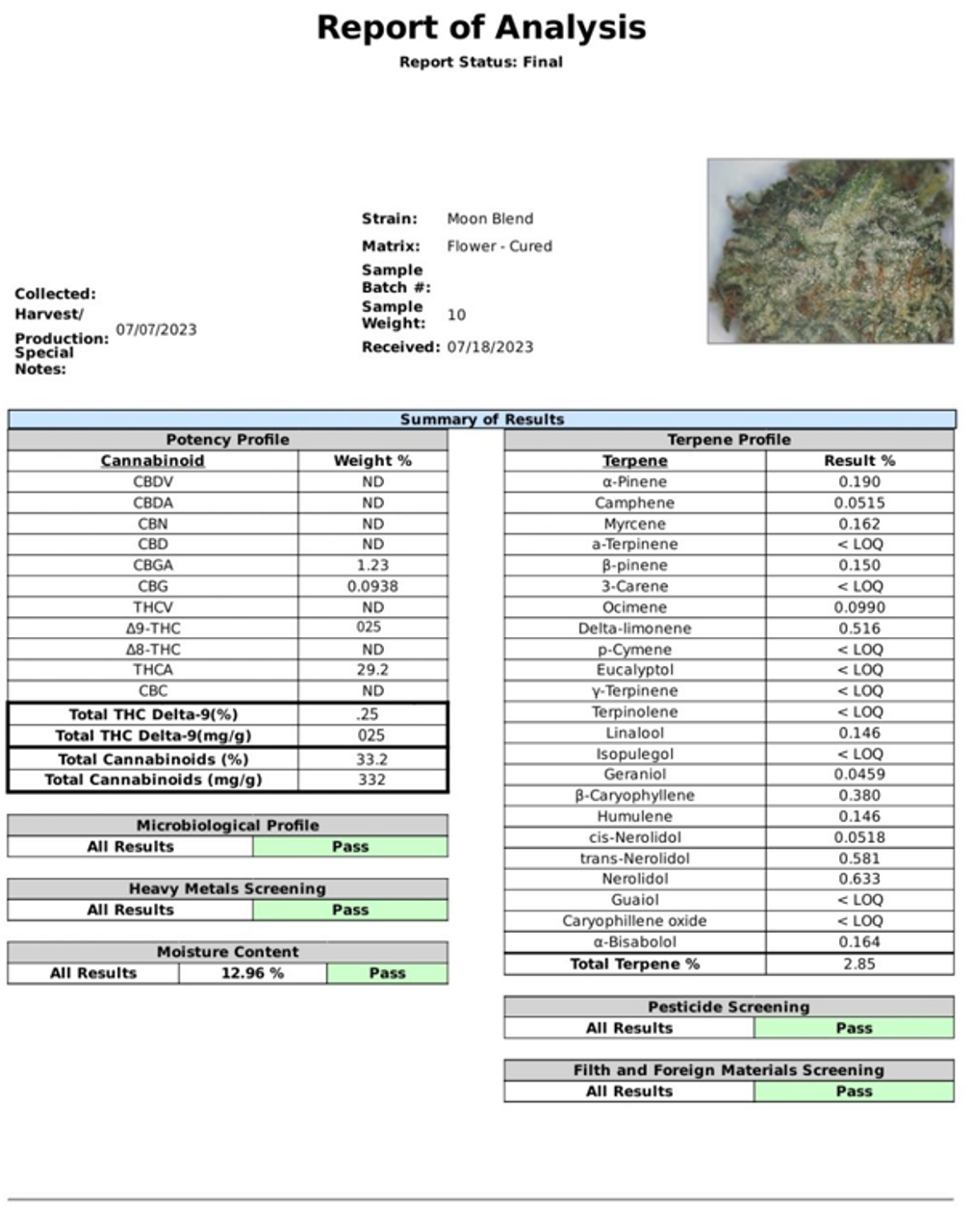 The hybrid nature of Moon Blend Hemp Tea, a fusion of Space Runtz and Devil Driver, imparts a distinctive combination of effects and aromas. The lineage ensures a complex profile that sets it apart, offering a nuanced experience for seasoned THCA enthusiasts. This blend’s composition highlights its unique origins and emphasises its status as a premium product in the THCA tea category.