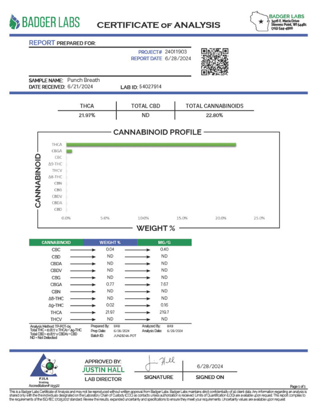 Very nice Punch Breath with terpenes spot on, very clean and well looked after tea with excellent hybrid effects, it is energetic then very calming.